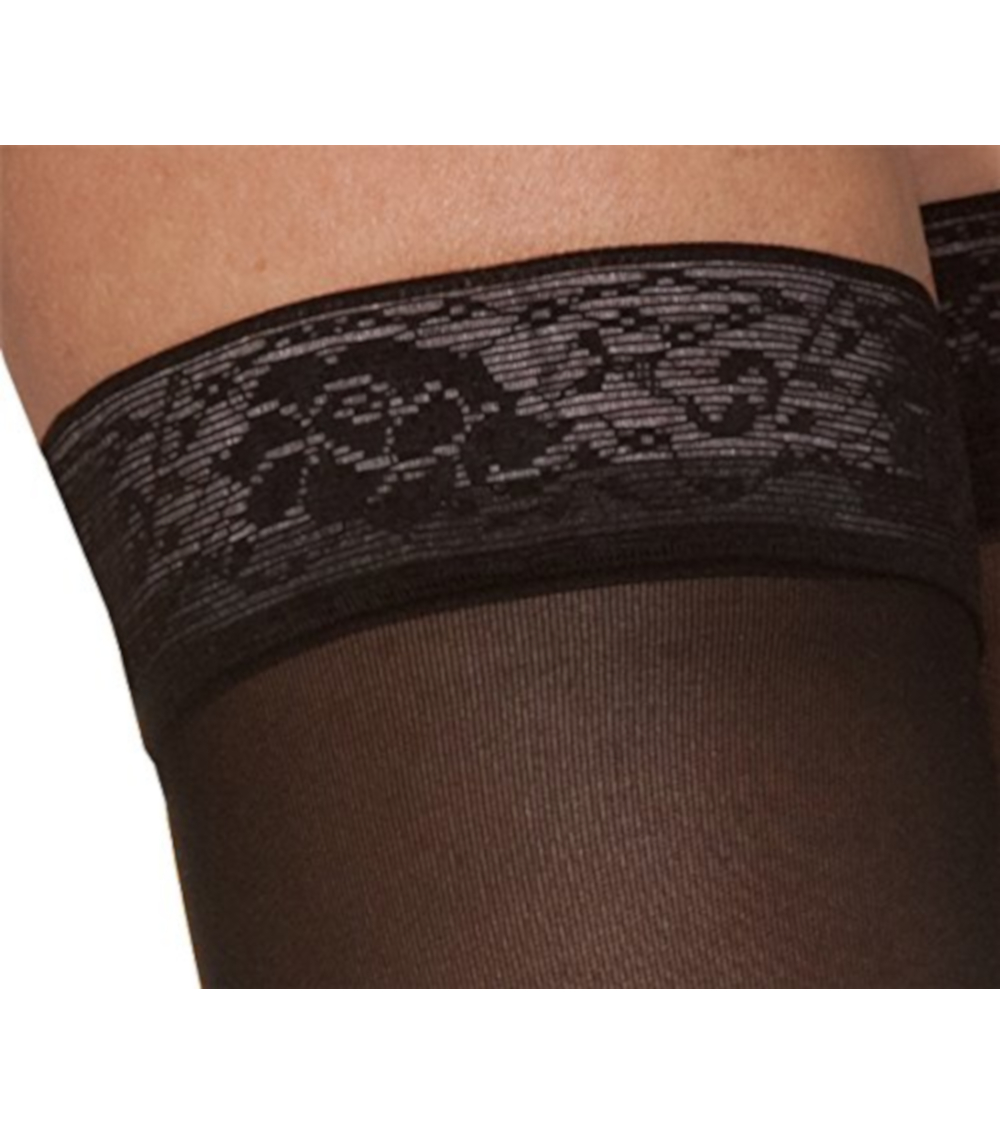 Bas de compression graduée médicaux transparents à la mode Construction en fils incrustés à double revêtement pour un port tout en douceur contre la peau. Excellentes respirabilité et absorption de l’humidité pour un confort accru. Ce produit comporte notre anti-glisse Sensinnov(R) en style cuisse pour la gestion de l'humidité, le confort et un port sans glissement.
