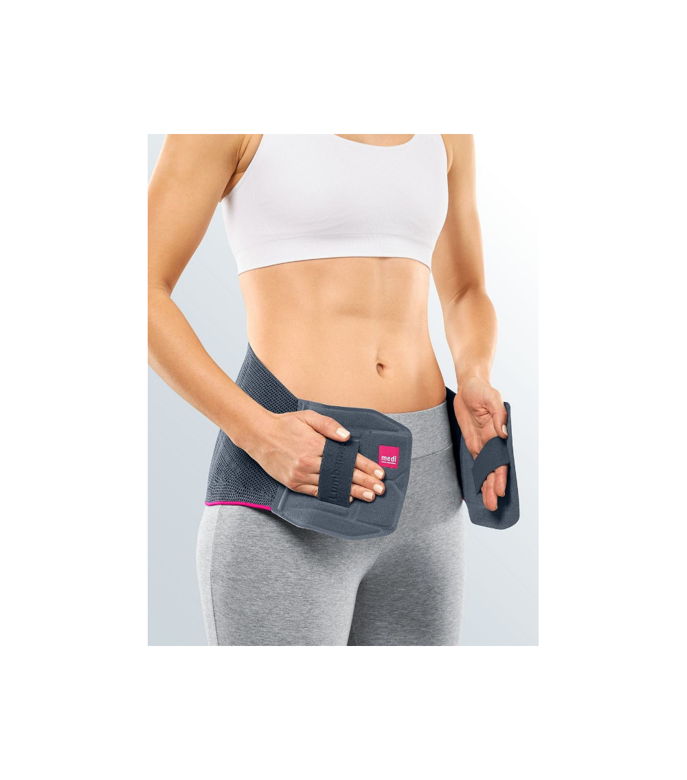 Grâce à l'association du tricot compressif et des baleines dorsales intégrées, Lumbamed basic stabilise la région lombaire et le bord du bassin, sans altérer la force musculaire. Les forces statiques au niveau de la colonne vertébrale sont améliorées et la sollicitation des segments affectés est réduite. Ceci soulage la douleur. Les ceintures lombaires déploient leur efficacité maximale pendant l'exercice physique. En principe, elles peuvent être portées toute la journée. Mais cela dépend du niveau de confort de port. L'orthèse doit être retirée pendant des périodes de repos prolongées (par exemple, périodes prolongées en position assise, en voiture ou pendant les phases de sommeil). Si vous éprouvez une douleur excessive ou une gêne lors du port de la ceinture lombaire, retirez-la immédiatement et demandez conseil à un médecin. La ceinture lombaire peut être utilisée dans l'eau. Après utilisation, veuillez rincer soigneusement le dispositif.