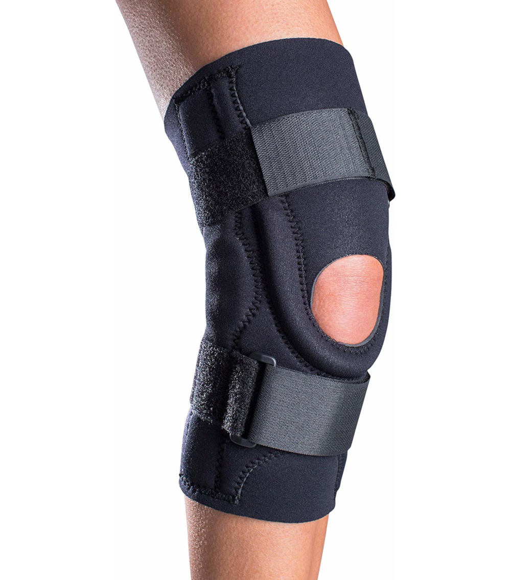 Construction en néoprène de 1/8 "avec renfort rotulien cousu et charnières polycentriques à double axe amovibles pour un meilleur support latéral / médian. Sangles supérieures / inférieures réglables pour la compression et la stabilité. , entorses du ligament collatéral grade 1.